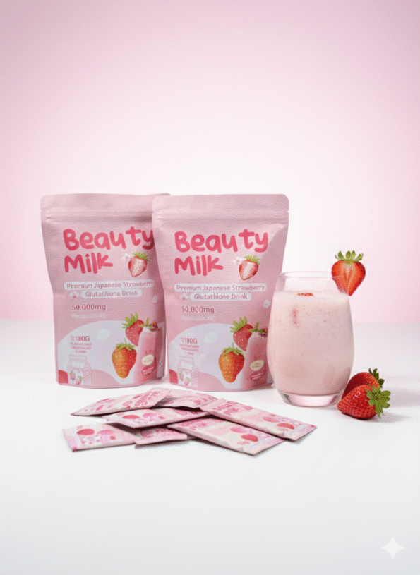 🍓 Beauty Milk – Japanese Strawberry Glutathione Drink – “Dark spot আর dull skin নিয়ে চিন্তা শেষ!”